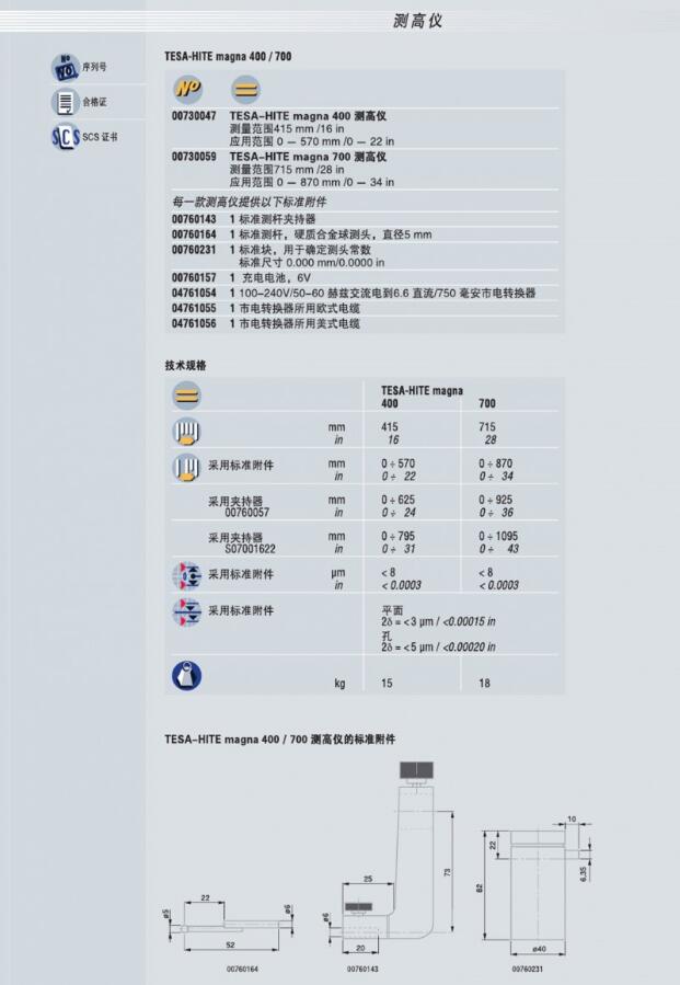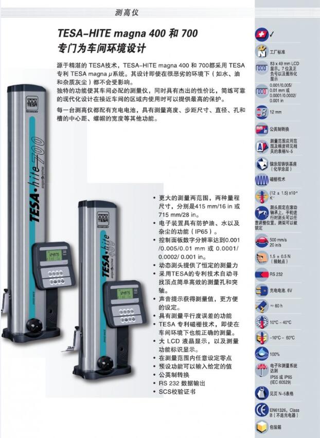 產品簡介 product presentation 商品名稱 瑞士 TESA 高度 儀 型號 TESA-HITE MAGNA 400/700 測量范圍 0-415/715mm 分辨率 0.001mm 供 應 商 佛山市精測計量儀器設備有限公司 產品概述 product presentation TESA......