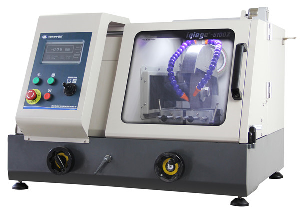 iqiege®-6100Z型手自一體式切割機是由機身、電控箱、切割室、電機、冷卻系統(tǒng)、切割砂輪片等部件組成。本切割機不但可以切割直徑為100mm以內(nèi)的圓形工件,還可以切割高70mm、寬100mm以內(nèi)的長方形試樣。另外,本機可根據(jù)鋸片消耗量,實時調(diào)整主軸高度。該機通過冷卻系統(tǒng)對試樣進行冷卻,以防止試樣在切割過程中過熱而燒壞組織。該機可以切割試樣選擇3種不同的切割模式,并能對切割進給速度和切割行程進行設(shè)定,從而提高了切割試樣的質(zhì)量。該機分手動切割和自動切割。并具有安全保護和運行提示功能,更便于人機的對話。大容積的切割室,更便于切割者使用,是大專院校、工廠企業(yè)金相試驗必備的取樣設(shè)備之一。
